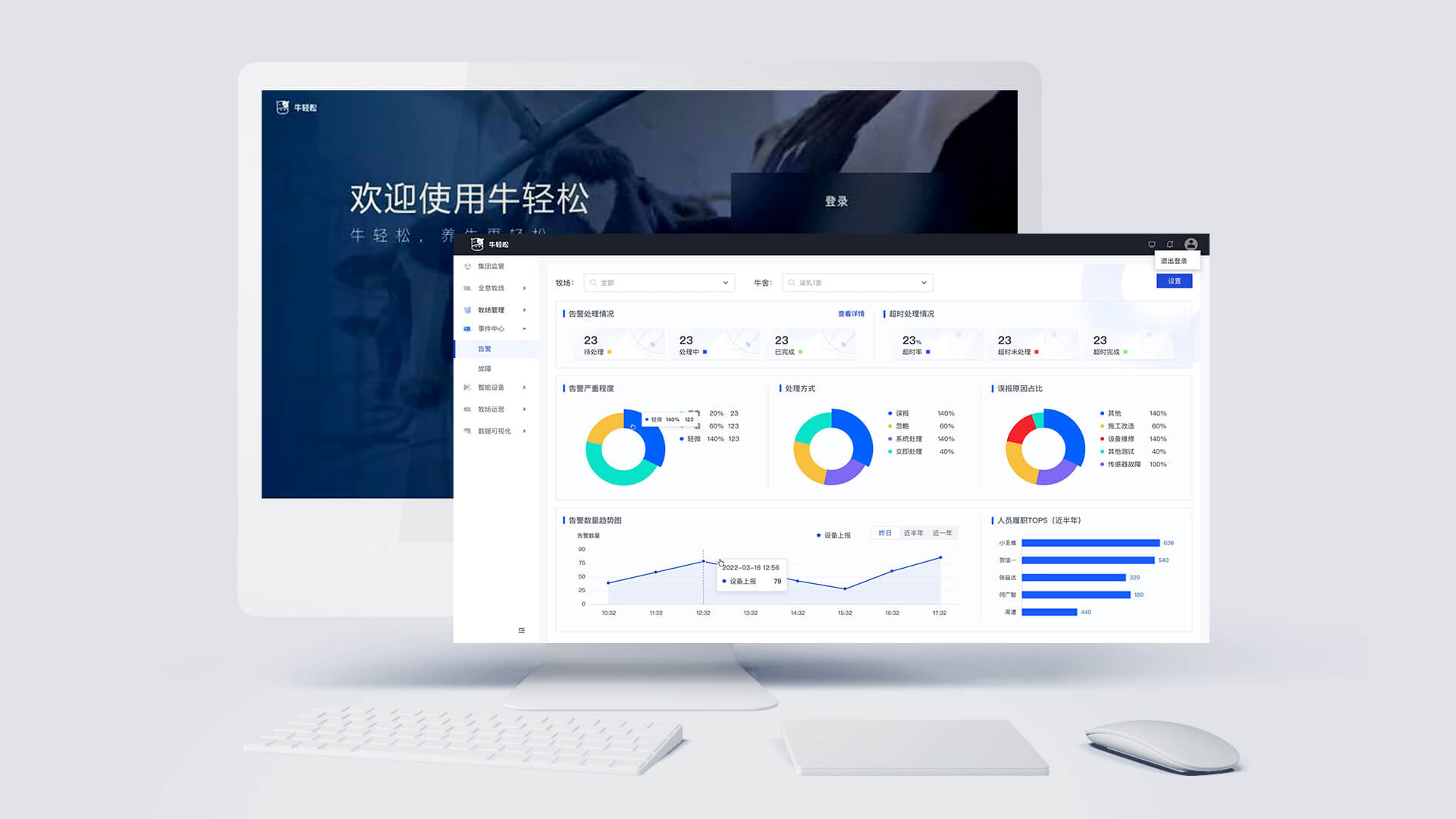 牛輕松對牧場的智能風機系統(tǒng)、噴淋系統(tǒng)、視頻監(jiān)控系統(tǒng)、智能照明系統(tǒng)、能源監(jiān)測系統(tǒng)、環(huán)境監(jiān)測系統(tǒng)、工單系統(tǒng)等進行統(tǒng)一的管理與聯(lián)動配置。產(chǎn)品的應用實現(xiàn)牧場內(nèi)所有設備的一鍵全連、協(xié)同聯(lián)動及可視化管理,輔助牧場能夠綠色的、高效的、可持續(xù)盈利的長足發(fā)展。